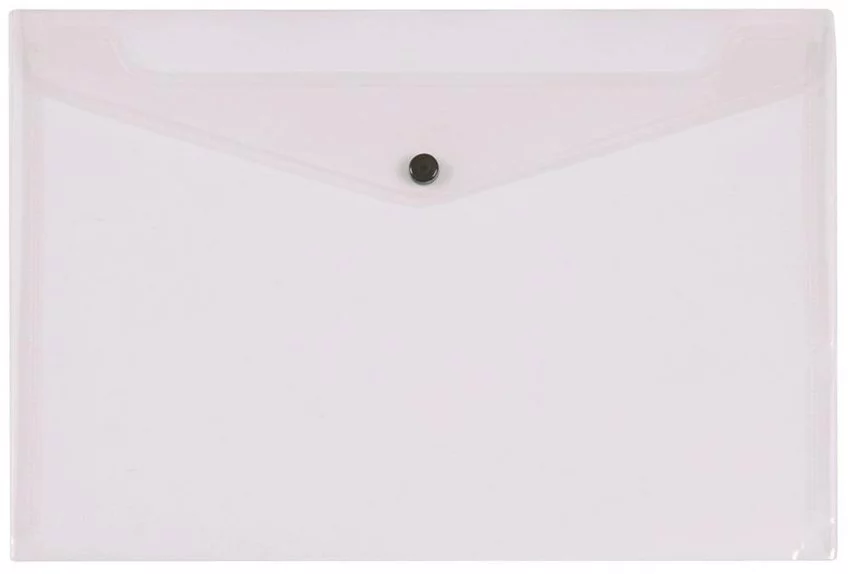 teczka kopertowa, wykonana z polipropylenu o grubości 172µmzamykana na zatrzask format: A4 rozmiar: 234x324mm kolor przeźroczysty