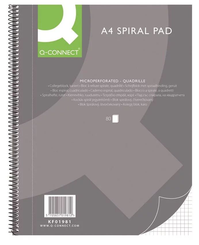 kołonotatnik, format A4, w kratkęilość kartek: 80 kratka o wymiarach 5x5mm gramatura kartek: 70gsm dzięki perforacji możliwość wpinania do segregatorów lub skoroszytów dziurkowanie: 4 kartki w kolorze białym kolor szaro-zielony
