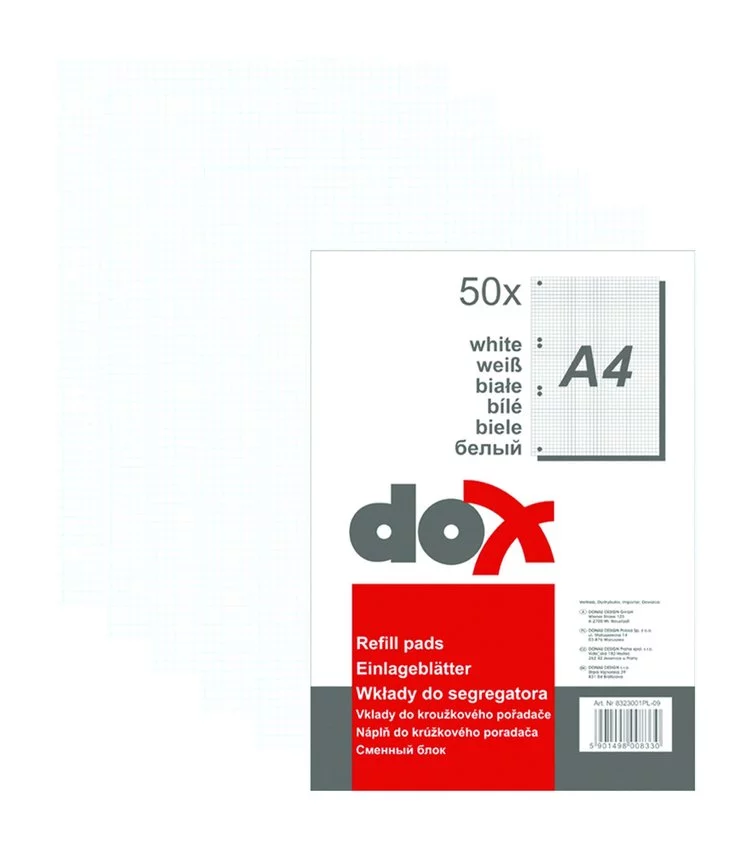 dostosowany do segregatorów ringowych oraz z mechanizmem dźwigniowym z dociskaczemw niebieską kratkę 5x5mm gramatura papieru: 70-80gsm indywidualnie foliowany format: A4 50 kartek w j.s. kolor biały