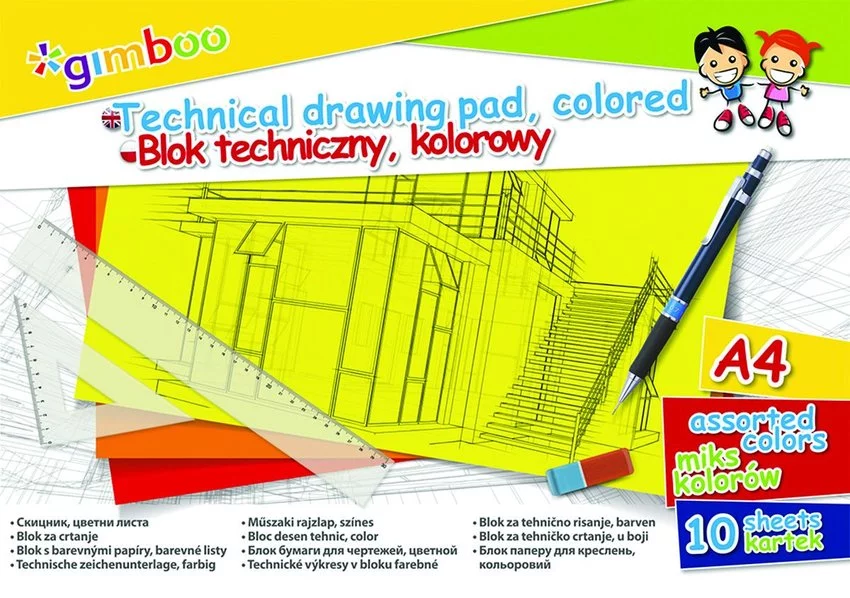 Blok Techniczny Gimboo A4 10 Kart. 150Gsm Mix Kolorów
