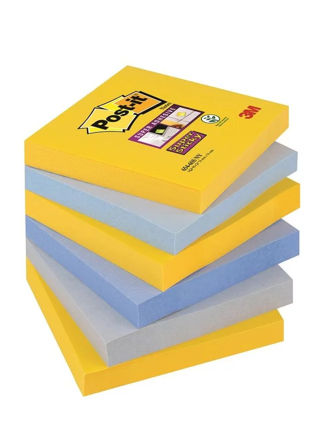 karteczki samoprzylepne Post-it® Super Stickyinnowacyjne rozwiązanie na codzienne zarządzanie zadaniami i priorytetami dzięki kolorom świetnie się wyróżniają, dzięki Super Sticky trzymają się w każdym miejscu kolekcja 3 wyjątkowych kolorów karteczek: Bananowo Żółte, Stalowa Szarość, Lazurowo Niebieskie korzystaj z różnych kolorów i rozmiarów do tworzenia własnej hierarchii ważności zadań lub kodowania zagadnień 2x większa siła kleju Super Sticky vs klasyczne karteczki Post-it® Super Sticky trzymają się każdej powierzchni, abyś nie musiał się martwić, że Twoja wiadomość może zginąć idealne przy biurku jak i na "trudnych" dla zwykłych karteczek samoprzylepnych pionowych powierzchniach takich jak ściany, meble i okna - zawsze trzymają się mocno, odklejają bez uszkadzania powierzchni i bez śladu kleju - nawet przy wielokrotnym użyciu produkt z certyfikatem PEFC, który potwierdza zrównoważone źródła pozyskania surowców - kupując dbasz o naszą planetę super mocny klej Super Sticky w 60% wyprodukowano z surowców roślinnych - mniejsze wykorzystanie pochodnych ropy naftowej w przeciwieństwie do produktów innych marek papier z certyfikatem PEFC CH18/0914, bielony bez użycia chloru gazowego bloczek samoprzylepny Post-it® po użyciu nadaje się do recyklingu i może być segregowany razem z papierem podejmuj świadome decyzje i sprawdź czy karteczki samoprzylepne na Twoim biurku mają informację potwierdzającą, że nadają się do recyklingu każdy notes samoprzylepny Post-it® dostępny w Polsce został wyprodukowany z surowców z certyfikowanych źródeł, przy zachowaniu najwyższych standarów kontroli jakości i warunków pracy we własnych zakładach produkcyjnych 3M™ w USA i/lub Europie, z dbałością o środowisko - od źródła, poprzez Twoje biurko, a następnie recykling i ponowne wykorzystanie ilość karteczek: 6x90 w rozmiarze 76x76mm gramatura: 74gsm kolor: mix koloró