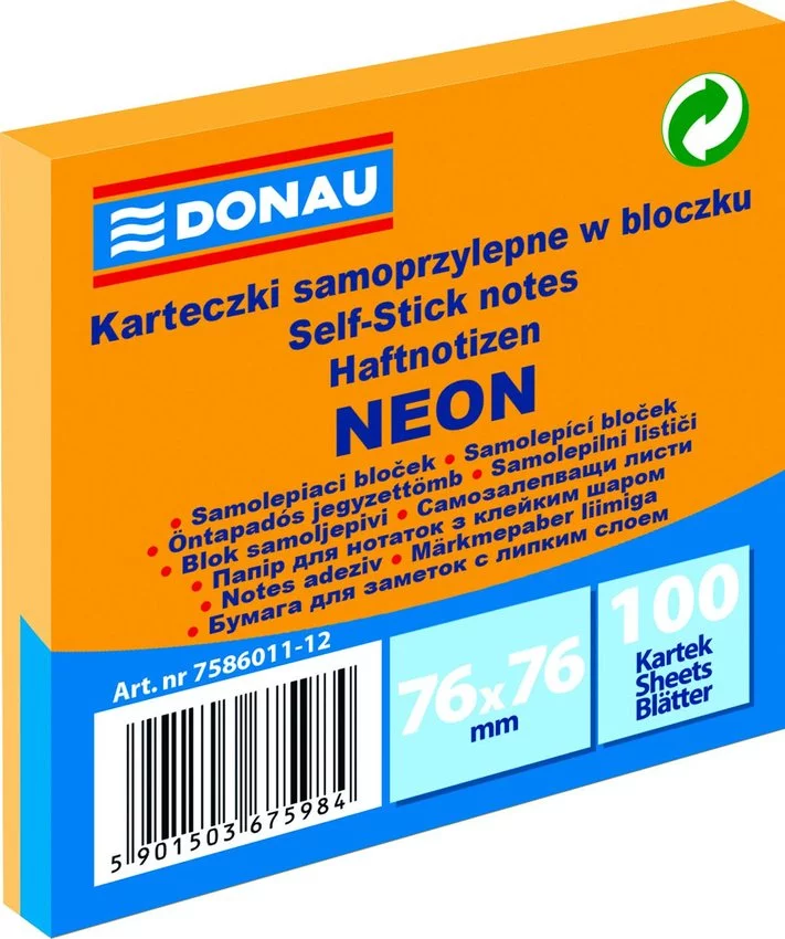 Bloczek Samoprzylepny Donau 76X76mm 1X100 Kart. Neon Pomarańczowy