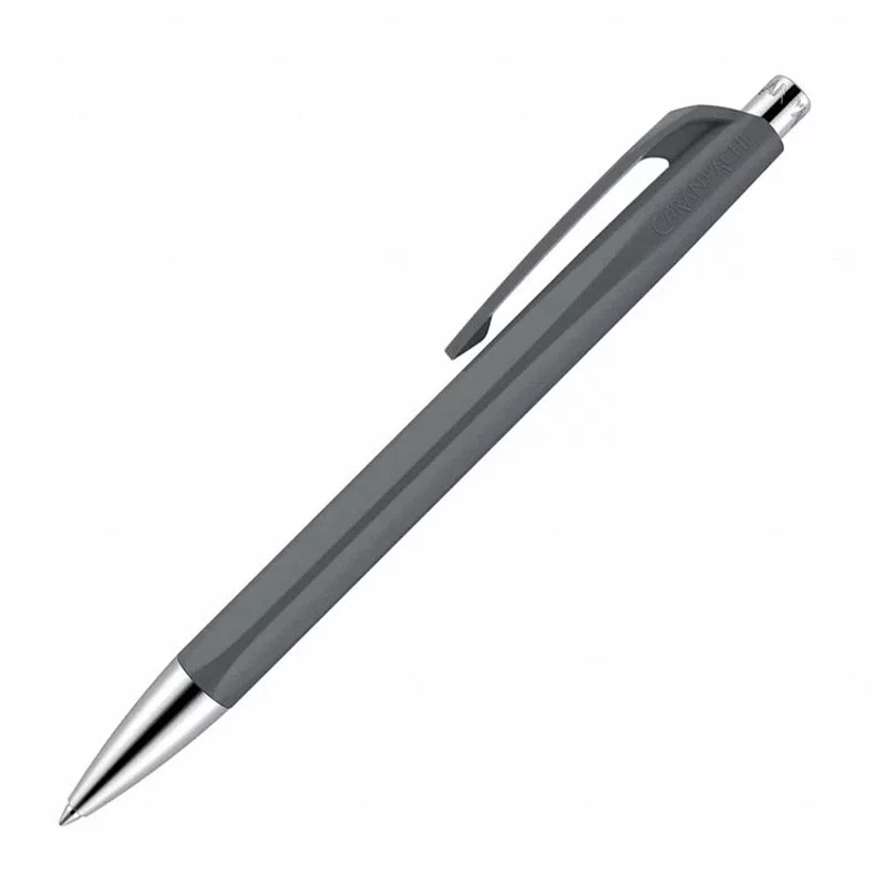 długopis szwajcarskiej marki Caran d’Ache z kolekcji 888 Infinitesześciokątny korpus wykonany z tworzywa bardzo dobrze układa się w dłoni długopis posiada przyciskowy mechanizm wysuwu wkładu i elastyczny klips dzięki specjalnym wkładom Swissride na bazie tuszu hybrydowego pisane staje się bardziej płynne i gładkie wyprodukowany w Szwajcarii kolor: szary