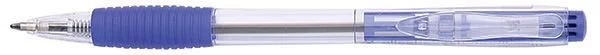 długopis automatyczny z wymiennym wkłademobudowa zaprojektowana specjalnie pod kątem ergonomii gumowy uchwyt gwarantujący komfort pisania transparentna obudowa pozwalająca kontrolować stopień zużycia tuszu klips w kolorze tuszu tusz wodoodporny średnica kulki: 0,7mm grubość linii pisania: 0,5mm kolor: niebieski