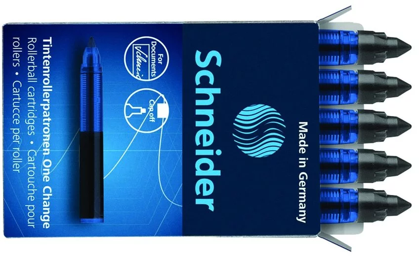 uzupełniające kartridże z ultra gładko piszącą końcówkądedykowane do piór One Change, Base Ball, Breeze (pasują także do piór wiecznych spoza oferty Schneider) grubość linii pisania 0,6 mm wodoodporny tusz zgodny z normą ISO 14145-2 Super-Flow-System precyzyjnie kontrolujący dozowanie tuszy do ostatniej kropli widoczny poziom zużycia tuszu tusz szybkoschnący, nie rozmazuje się pod wpływem zakreślacza tusz cap-off - nie wysycha bez skuwki przez 2-3 dni 5 szt. w j.s. kod kreskowy umieszczony na każdym produkcie kolor atramentu: czarny