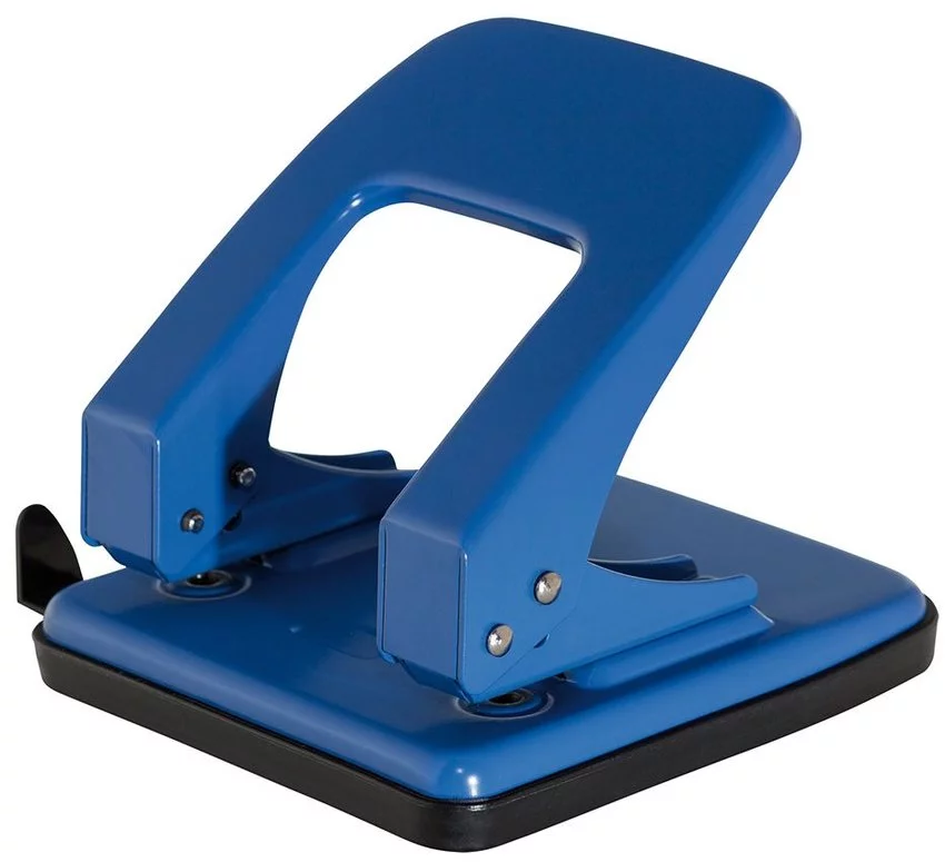 dziurkacz do 40 kartekmechanizm i obudowa metalowe głębokość wsuwania kartek: 12mm odstęp pomiędzy dziurkami: 80mm średnica dziurki: 5,5mm ogranicznik formatu: Q1, US-Quart, 888, Folio, A4, A3-E, A5, A6, B5, B6, Ex antypoślizgowa plastikowa nakładka na podstawę wskaźnik środka strony posiada wbudowaną blokadę ramienia na dziurkaczu nadrukowana nazwa marki pakowany po 1szt. w katonowe pudełko gwarancja 5 lat kolor: niebieski