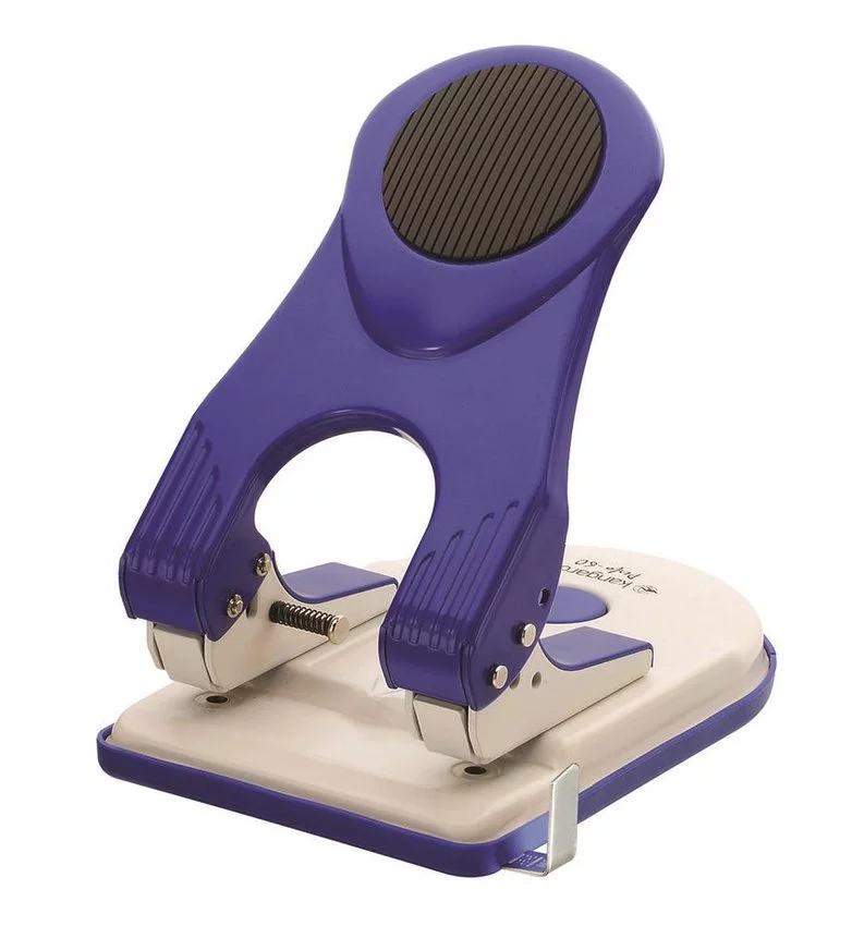 ergonomiczny, profesjonalny dziurkacz Perfo-60 w jaskrawych kolorachposiada prowadnicę umożliwiająca precyzyjne dziurkowanie konstrukcja w całości wykonana z metalu uchwyt z blokadą wyjmowana tacka na ścinki dziurkuje: do 60 kartek odległość dziurek: 80mm średnica dziurki: 5,5mm 10 lat gwarancji kolor niebieski