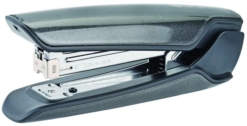 metalowy ergonomiczny korpus, mechanizm oraz podstawa o długości 144 mmzszywanie: otwarte, zamknięte oraz tapicerskie wbudowany rozszywacz z uchwytem na zszywki wskaźnik zużycia zszywek zszywki: 24/6 lub 26/6 pojemność: 100 lub 150 zszywek zszywa: do 30 kartek głębokość wsunięcia kartki: 70 mm 10 lat gwarancji na ramieniu nadrukowana nazwa i logo producenta, na podstawie nadrukowana nazwa i logo producenta, model oraz rozmiar zszywek kolor: metaliczny szary