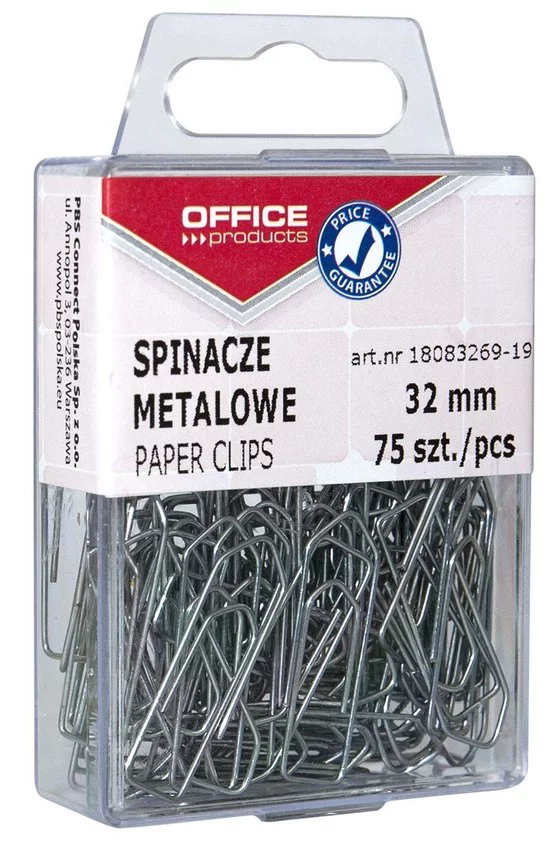 spinacze metalowerozmiar: 32mm pudełko z zawieszką kolor: srebrny 75 szt. w opakowaniu 1 op. w j.s.