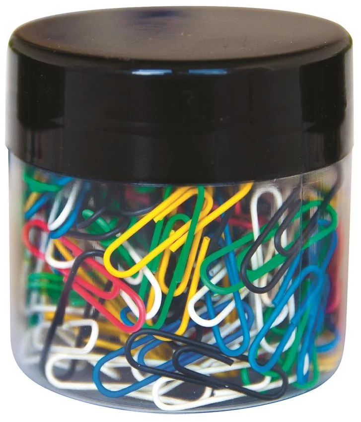 Spinacze Okrągłe Q-Connect 28mm 150Szt. W Plastkowym Słoiku Mix Kolorów