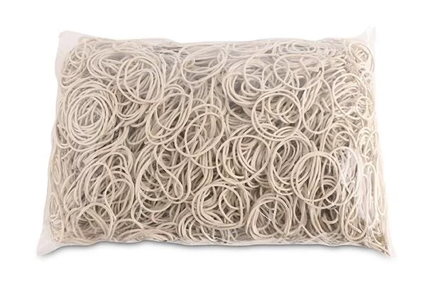 gumki recepturkiwytrzymałe i elastyczne wykonane z materiału o domieszce kauczuku (60%) średnica: 40mm grubość/szerokość: ok. 1,5x1,5mm waga opakowania: 1000g kolor: biały