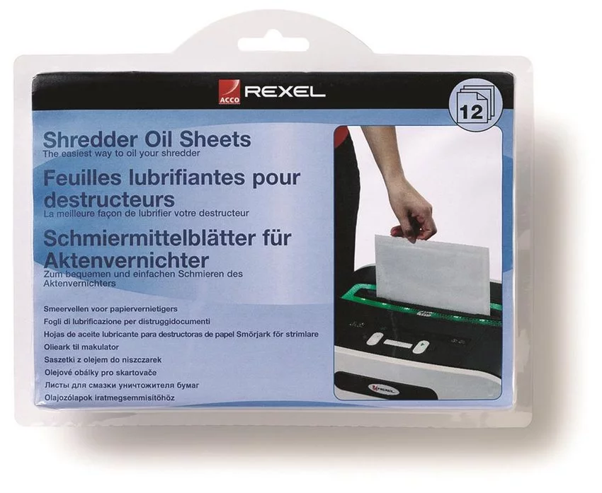 najprostszy sposób oliwienia niszczarki opracowany, aby przedłużyć żywotność urządzeniapo prostu zniszcz arkusz smarujący, tak jak papier 12 szt. w j.s.