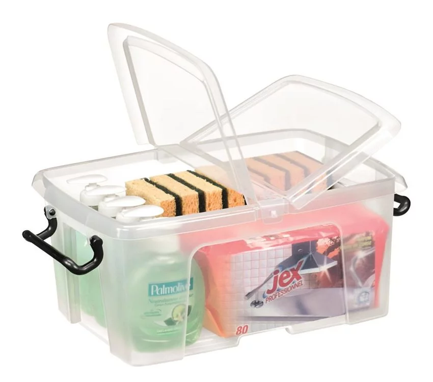 pojemnik biurowy, wykonany z odpornego, sztywnego polipropylenu w 100% nadającego się do dalszego recyklingudo przechowywania lub archiwizowania dokumentów lub innych przedmiotów - także do użytku domowego wyposażony w dwuczęściową pokrywę otwieraną z dwóch stron dwa klipsy, umieszczone na przeciwnych biegunach, gwarantują solidne zamknięcie pojemnika dzięki konstrukcji można je ustawiać w poziomie pojemność: 12l wymiary: 295x405x183mm kolor transparentny