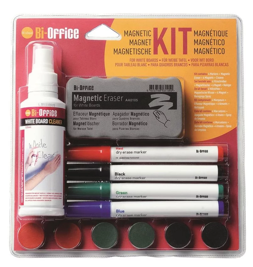 Zestaw Do Tablic Magnetycznych Bi-Office Spray Gąbka 4 Markery Oraz Magnesy