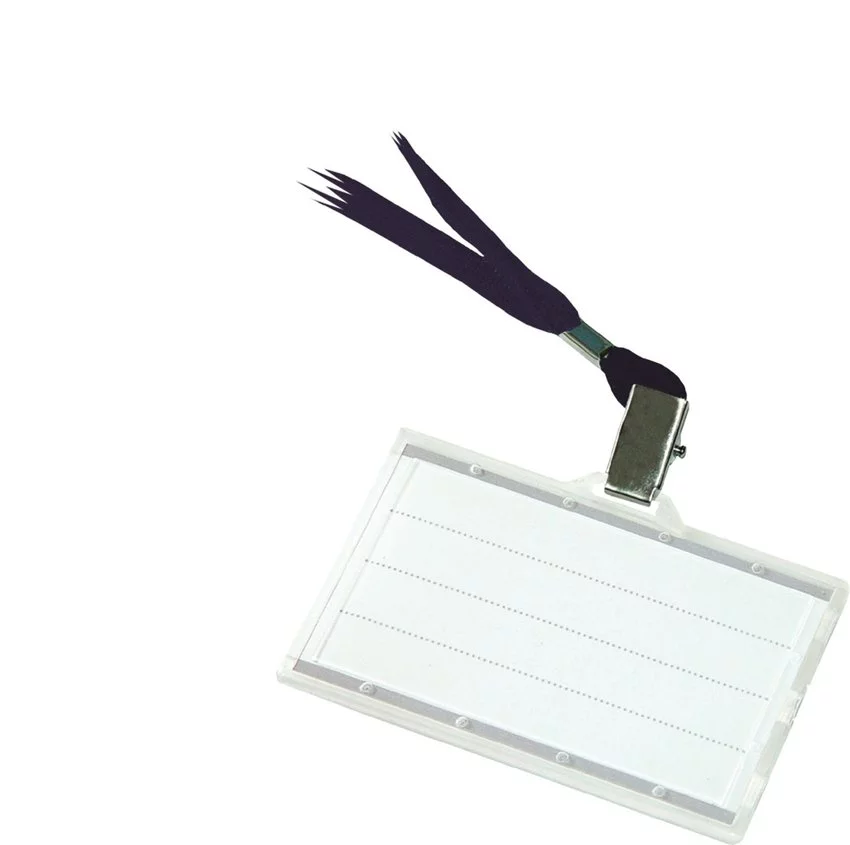 wyposażony w jedwabną taśmę w kolorze czarnym lub niebieskimposiada wycięcie na palec ułatwiające wysunięcie karty, wizytówki rozmiar przystosowany do kart wizytowych w rozmiarze 85x50mm w komplecie karta opisowa na nazwisko wykonany z elastycznego polipropylenu odpornego na pęknięcia doskonale chroni karty magnetyczne, karty zbliżeniowe oraz identyfikatory szerokość taśmy: 10mm długość taśmy z klipsem: 51cm kolor czarny