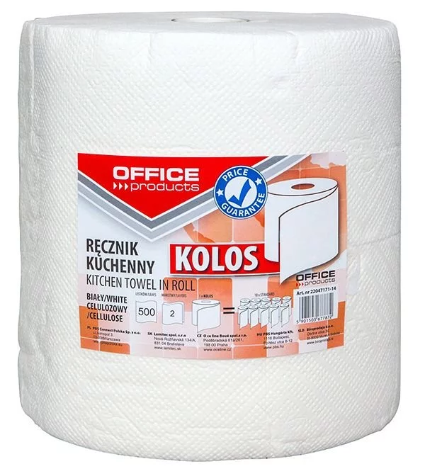 Ręczniki Kuchenne Celulozowe Office Products Kolos 2-Warstwowe 500 Listków 100M Białe