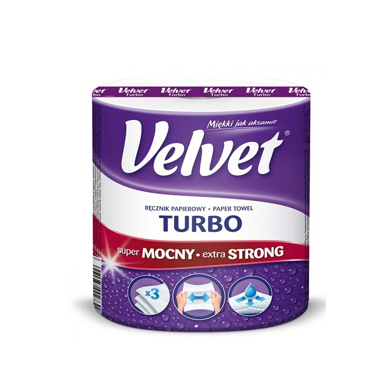 Ręcznik W Roli Celulozowy Velvet Turbo 3-Warstwowy 300 Listków Biały