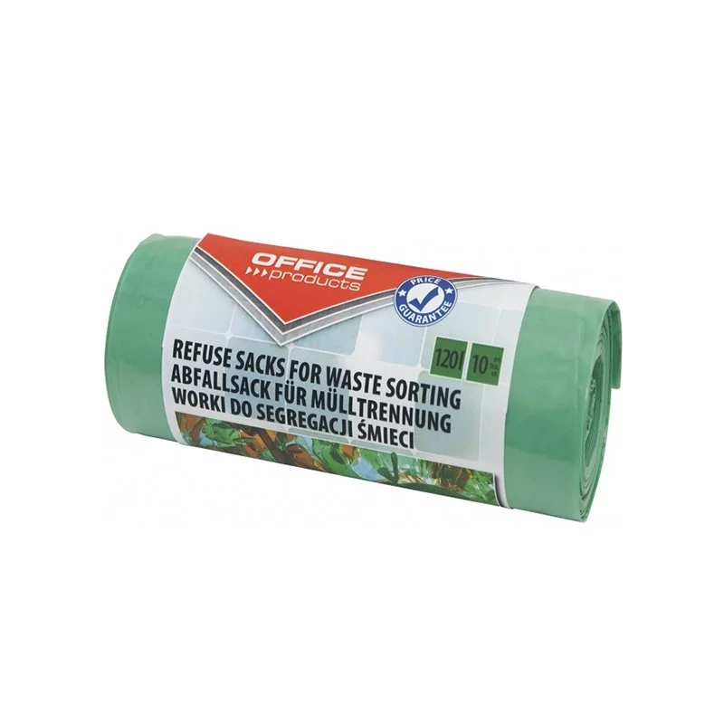 Worki Na Śmieci Domowe Office Products Do Segregacji Szkła Mocne (Ldpe) 120L 10Szt. Zielone