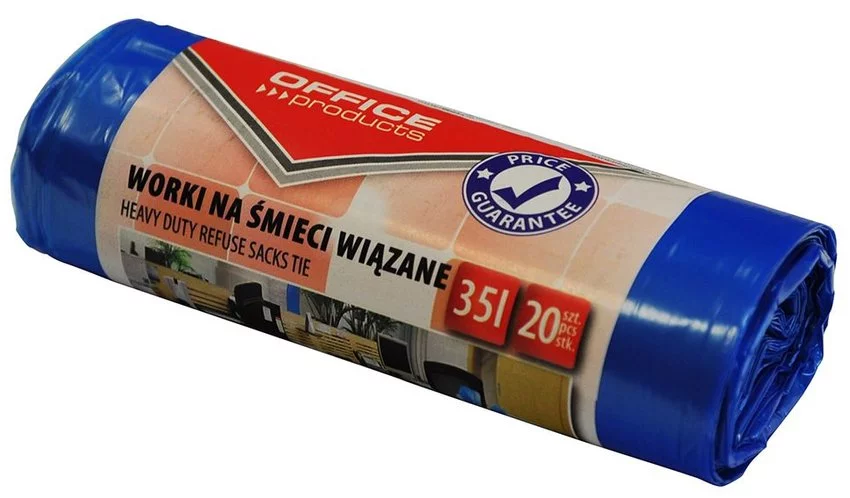 Worki Na Śmieci Wiązane Office Products Premium (Ldhd) 35L 20Szt. Niebieskie