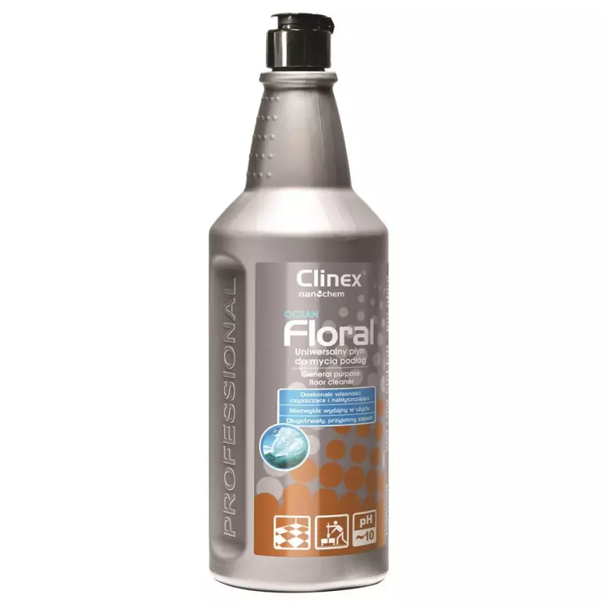 Clinex Floral Ocean 1L to uniwersalny, skoncentrowany płyn do mycia podłóg przeznaczony do profesjonalnego utrzymania czystości wszelkiego rodzaju posadzek odpornych na działanie wody. Szybko odparowuje, nie pozostawiając smug ani zacieków, nadaje delikatny połysk oraz opóźnia proces odkładania się brudu, dzięki czemu podłogi dłużej pozostają świeże i czyste.
