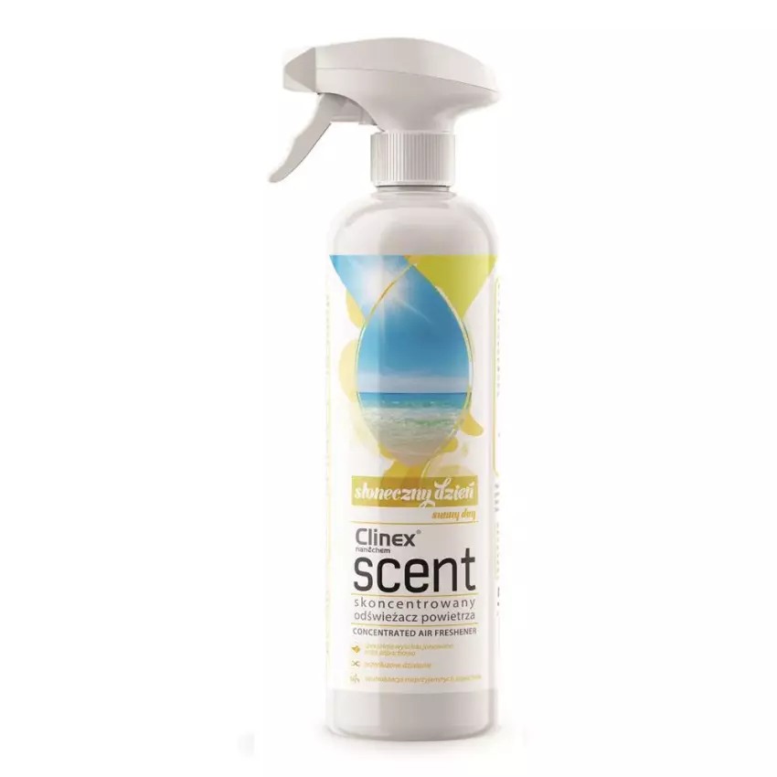 Clinex Scent Słoneczny Dzień to skoncentrowany preparat, który skutecznie eliminuje nieprzyjemne zapachy i nadaje wnętrzom długotrwałą świeżość. Dzięki wysokiej koncentracji kompozycji zapachowej produkt jest bardzo efektywny i oszczędny w użyciu – już kilka rozpyleń wystarcza, aby zauważyć wyraźną poprawę komfortu zapachowego w pomieszczeniu. Linia Scent wyróżnia się wielowymiarowymi, starannie dobranymi nutami zapachowymi, które odróżniają ją od klasycznych odświeżaczy i nadają pomieszczeniom bardziej wyrafinowany charakter.