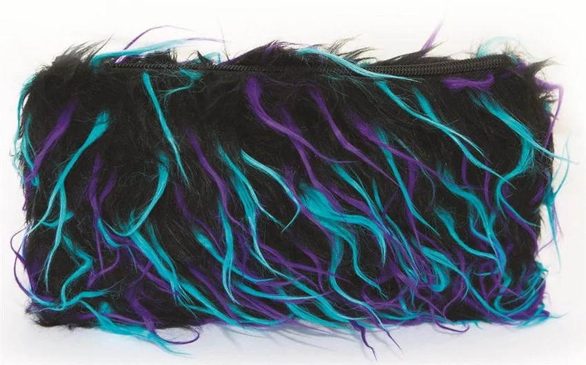 piórnik-saszetka/kosmetyczkaz zamkiem błyskawicznym materiał: tworzywo sztuczne, włochata wymiary:230x130x10mm bez wyposażenia czarna z kolorowym, długim włosem