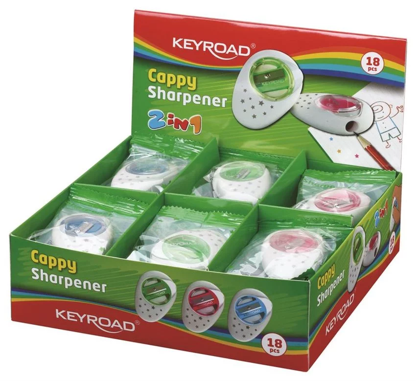 Temperówka Keyroad Cappy Plastikowa Pojedyńcza Z Gumką Pakowane Na Displayu Mix Kolorów