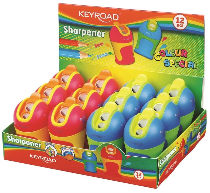 Temperówka Keyroad Color Mate Plastikowa Podwójna Z Pojemnikiem Ostrzenie Zaokrąglone Pakowane Na Displayu Mix Kolorów