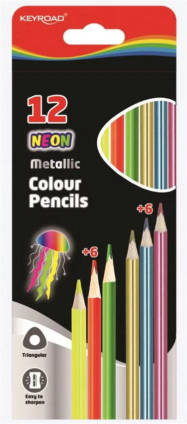 Kredki Ołówkowe Keyroad Trójkątne Metaliczne I Neonowe 12Szt. Mix Kolorów