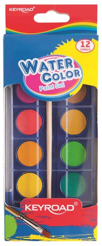 - Szkolne farby akwarelowe Keyroad to kolorowy zestaw idealny dla dzieci – 12 podstawowych barw, praktyczna zawieszka i dołączony pędzelek wspierają rozwój kreatywności w bezpieczny i wygodny sposób.