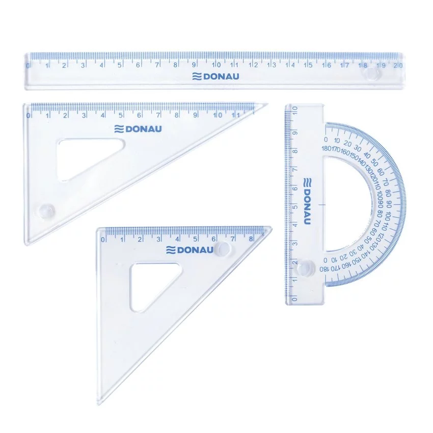 zestaw geometryczny przydatny dla każdego uczniawytrzymały, odporny na odkształcenia podziałka zgodna z normami zestaw mały: linijka 20cm, kątomierz, ekierka 10,5cm i ekierka 15cm kolor transparentny