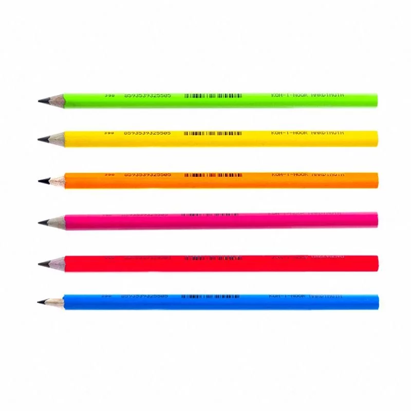 - Ołówki dostępne są w sześciu fluorescencyjnych kolorach: żółtym, pomarańczowym, czerwonym, różowym, niebieskim i zielonym