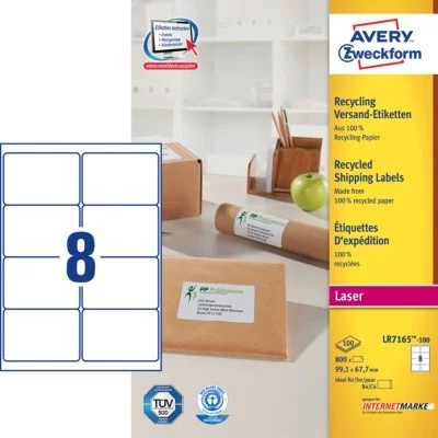 Etykiety Recyklingowane Samoprzylepne Avery 99.1x67.7 8/A4 A'100 Białe No.LR7165-100