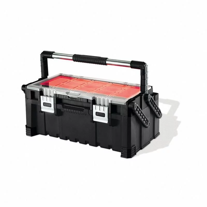 Praktyczna i wytrzymała skrzynka na narzędzia Cantilever to niezwykle przydatny element wyposażenia warsztatu. Skrzynka została zaprojektowana w taki sposób, aby wygodnie i bezpiecznie przechowywać i porządkować narzędzia i niezbędne akcesoria. Skrzynka posiada pojemną komorę, w której zmieszczą się narzędzia różnych rozmiarów. Profesjonalistów ucieszy również najwyższa jakość materiałów oraz profilowana, metalowa rączka z miękkim uchwytem pozwalająca na jej wygodny transport.