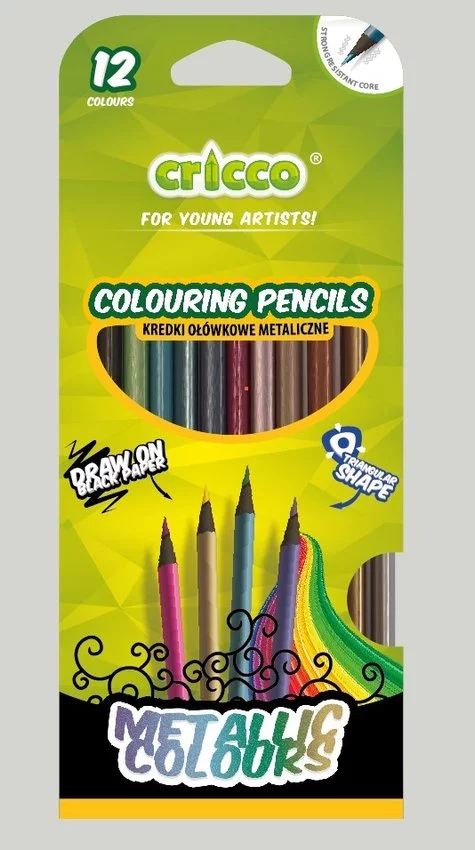 Kredki Cricco Trójkątne 12 Kol.Metaliczne Black Wood