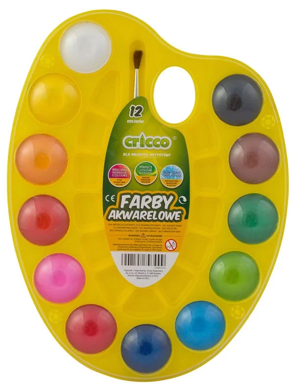 Farby akwarelowe Cricco 12 kol. z paletką i pędzelkiem to praktyczny zestaw dla każdego miłośnika malarstwa i kreatywnej zabawy.
