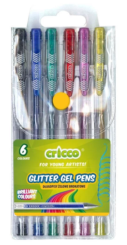 Długopisy Żelowe Brokatowe Cricco 6 Kol.Etui