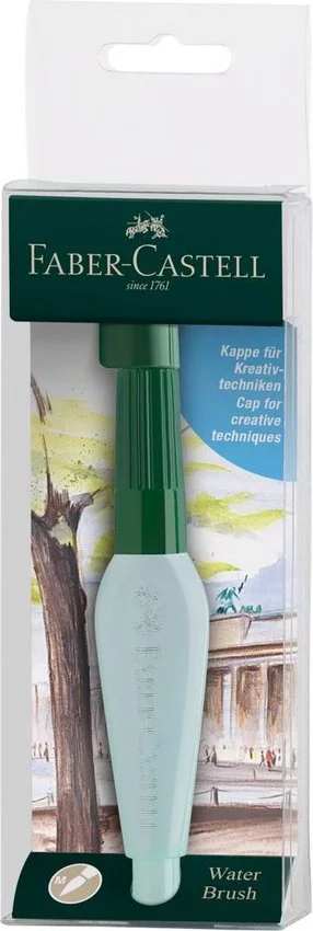 - Artystyczny pędzelek akwarelowy Faber-Castell z wodnym zbiorniczkiem i końcówką ze syntetycznego włosia.
