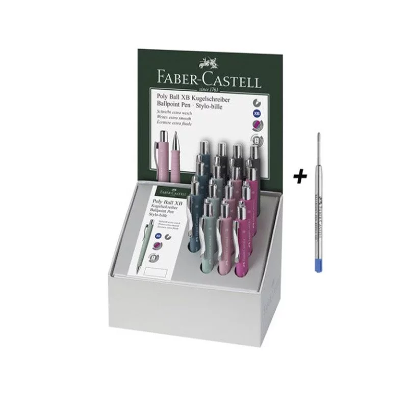 Długopis Poly Ball Xb (Miętowy, Różowy,Szmaragdowy, Pudrowo Różowy, Czarny) Display 15 szt.+ Wkłady Faber-Castell