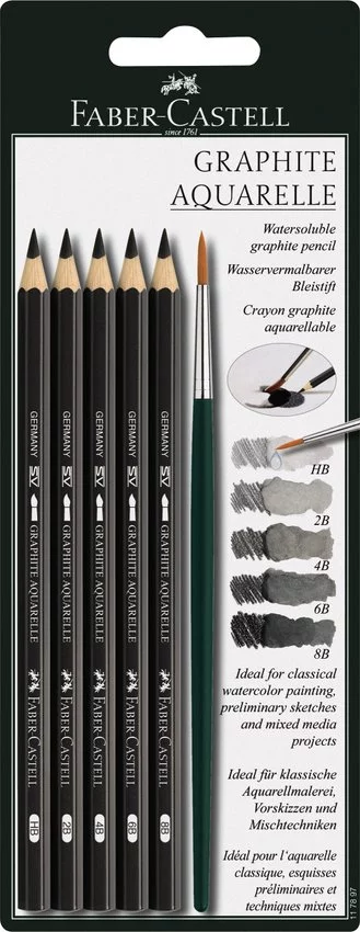 Ołówek Akwarelowy 5 szt. Hb,2B,4B,6B,8B + Pędzelek Blister Faber-Castell