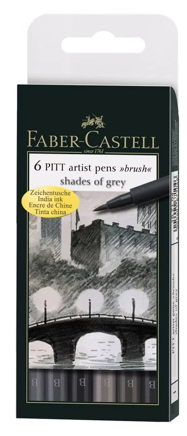 Pitt Artist Pen Grey 6 Kolorów Etui Faber-Castell