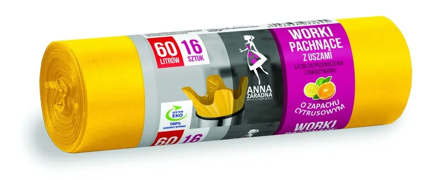 Worki na śmieci z uszami ANNA ZARADNA zapach cytrusów 60 l 16 szt. żółty