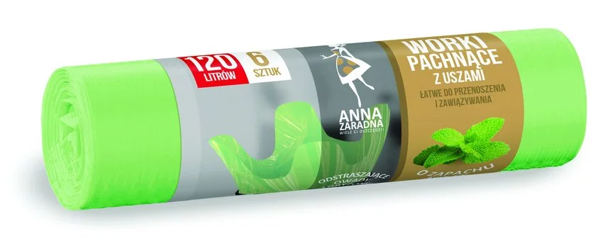 Worki na śmieci z uszami ANNA ZARADNA zapach miętowy 120 l 6 szt. miętowy