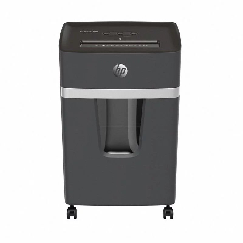 Niszczarka HP Pro Shredder 10MC w eleganckim bazaltowym kolorze to idealne rozwiązanie do małego biura lub użytku osobistego. Z łatwością niszczy karty kredytowe, zszywki, spinacze oraz papier. Serię Pro Shredder cechuje niezwykle ciche działanie. Posiada kółka, co ułatwia sprzątanie i transportowanie urządzenia między pomieszczeniami. Nowość roku 2021!