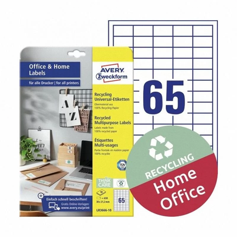 Etykiety Samoprzylepne Recyklingowe Avery Office&Home 38x21,2 65/A4 A'10 Białe No.LR3666-10