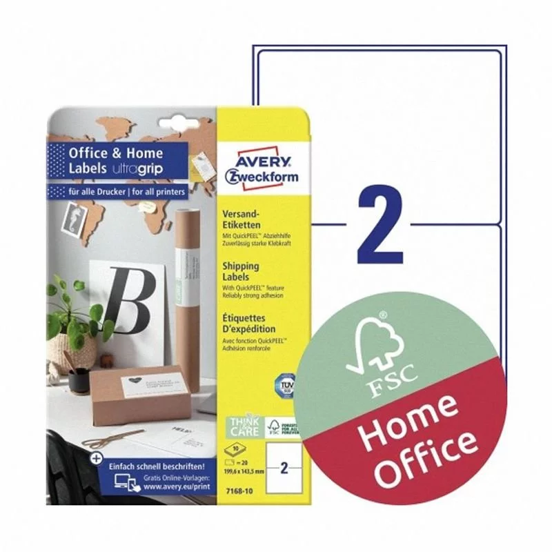 Etykiety Wysyłkowe Avery UltraGrip Office&Home 199,6x143,5 2/A4 A'10 Białe No.7168-10