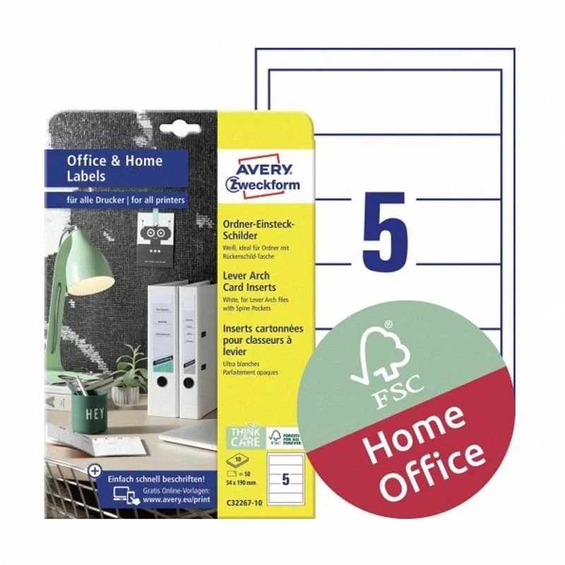 Etykiety na Segregatory z Okienkiem Avery Office&Home 54x190 5/A4 A'10 Białe No.C32267-10