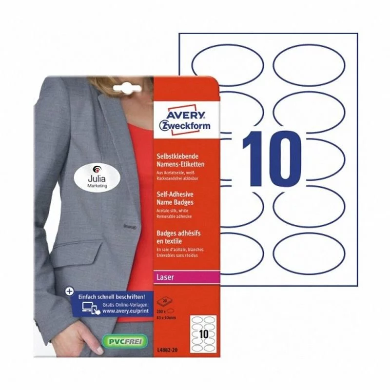 Usuwalne Samoprzylepne Identyfikatory Owalne Jedwabne Avery 85x50 10/A4 A'20 Białe No.L4882-20