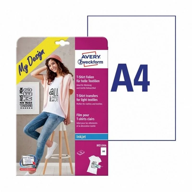 Folia do Wprasowywania na Jasne Tkaniny Avery 1/A4 A'24 Biała No.MD1006