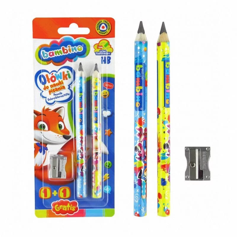 Ołówki dedykowane dzieciom w wieku wczesnoszkolnym. Są grube przez co wygodne dla dzieci, które uczą się dopiero prawidłowego chwytu i stawiają pierwsze litery. Ołówki Bambino wyróżnia bardzo wysoka jakość, produkowane są z drewna lipowego o twardości grafitu HB i średnicy 6 mm. Bardzo gruby grafit w mniejszym stopniu narażony jest na złamanie.